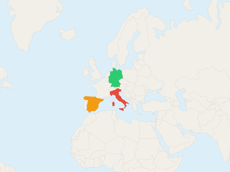 Single country highlighted on the map. Works with ISO codes or full country names.