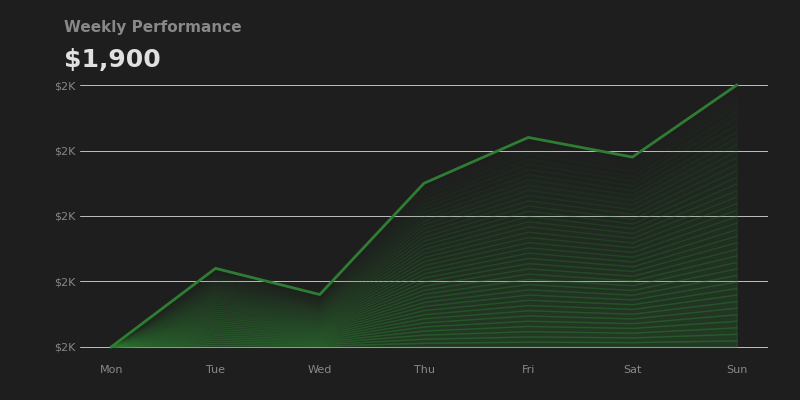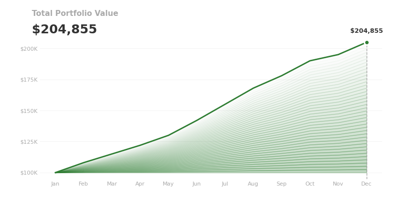 Portfolio chart in dark theme with green color. Perfect for dashboards with dark backgrounds.